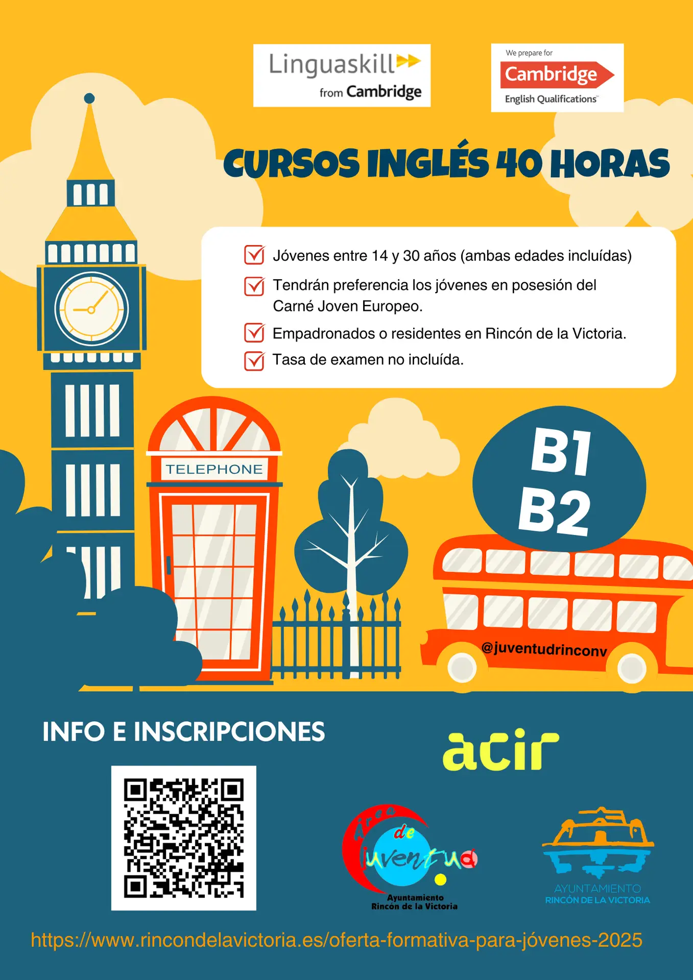 El Área de Juventud del Ayuntamiento de Rincón de la Victoria ha convocado dos cursos formativos para el aprendizaje de la lengua inglesa, destinado a jóvenes con edades comprendidas entre los 14 y 30 años, en los niveles B1 y B2.