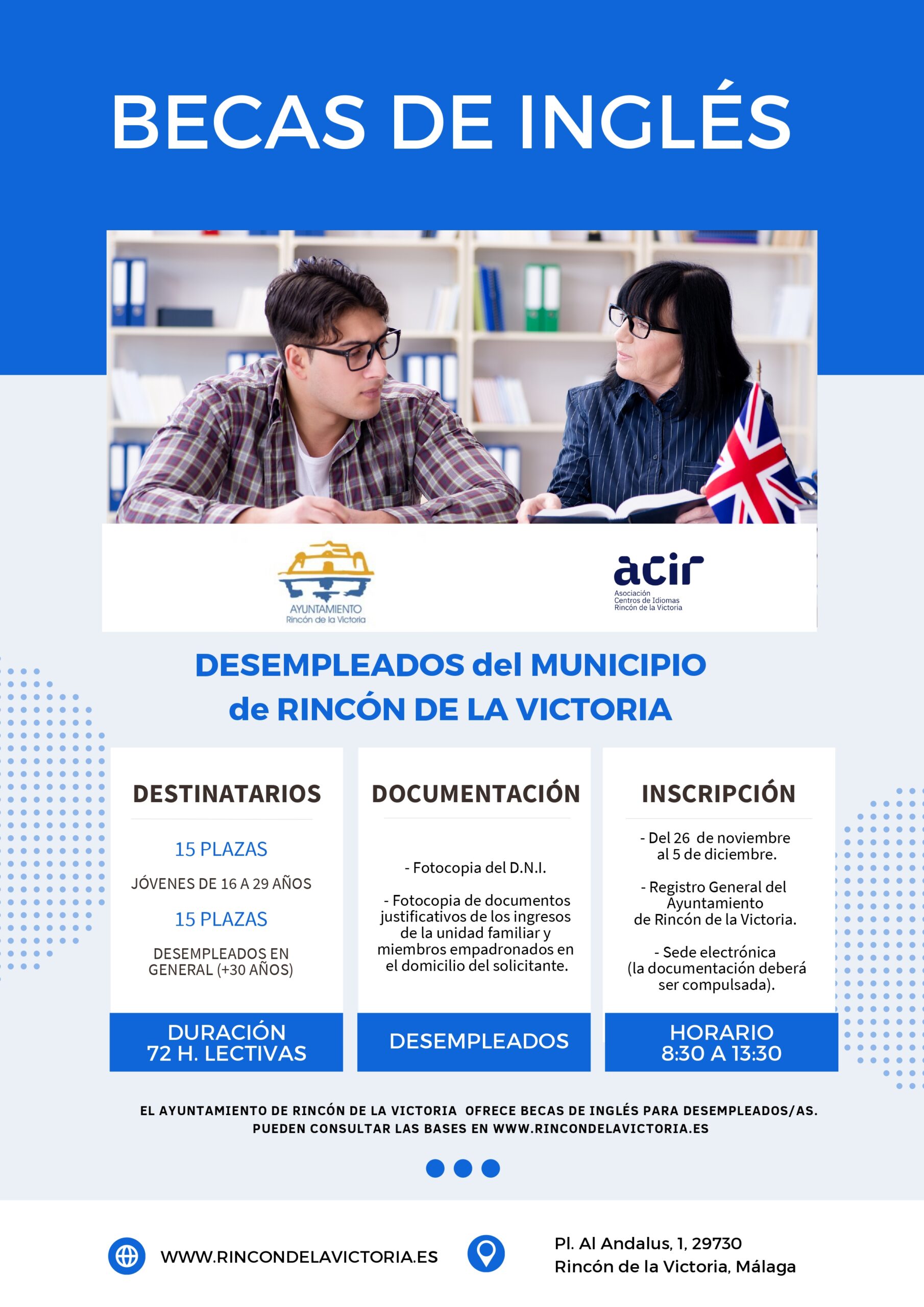 Entre los requisitos para optar a estas becas de idiomas se encuentran estar en desempleado, empadronado en Rincón de la Victoria a la fecha de apertura, y no percibir otra ayuda para la misma finalidad.