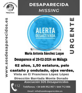 El cadáver hallado en la playa de Torre de Benagalbón es de una mujer desaparecida en Málaga. SOS Desaparecidos activó una alerta el mismo día que apareció el cuerpo sin vida de María Antonia, de 62 años.