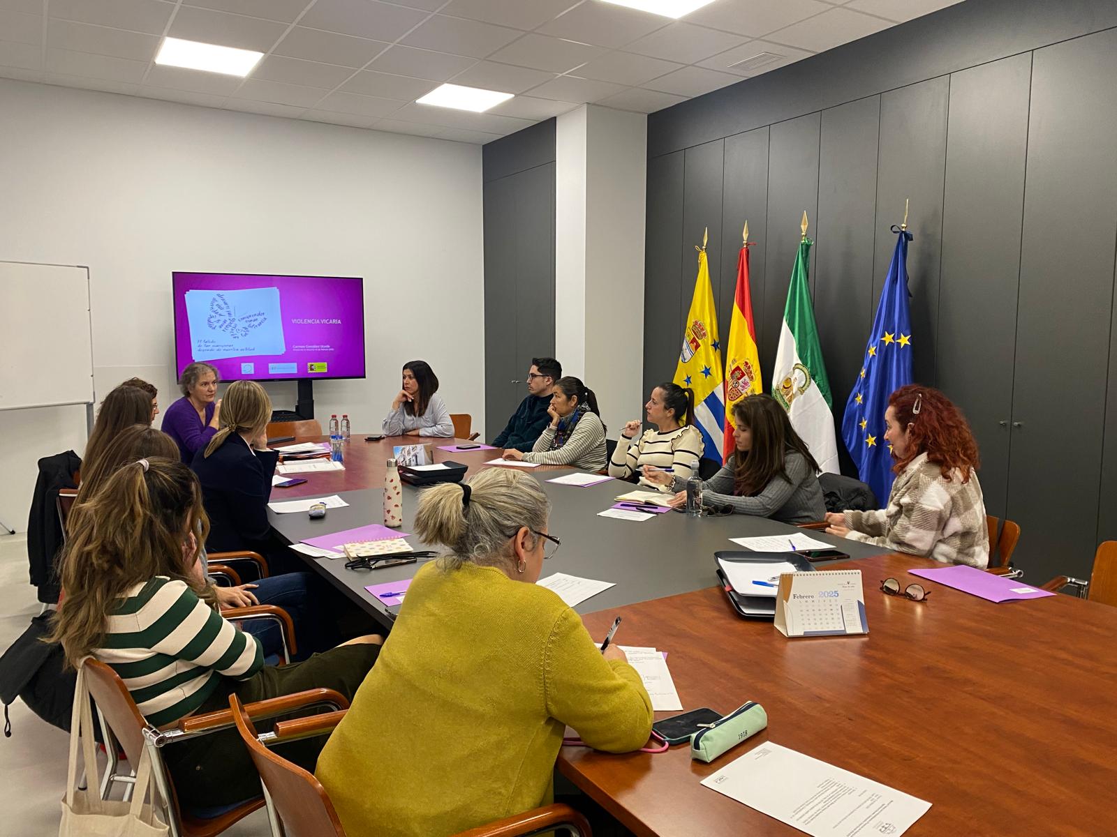El encuentro, que tuvo lugar ayer en el Consistorio, contó con la presencia de la concejala del Área, Olga Cervantes, una representación de los responsables del Plan de Igualdad en los centros educativos del municipio, y Mª del Carmen González, médica de familia y vicepresidenta de la Asociación Libres de Violencia Vicaria, que impartió una sesión formativa sobre cómo identificar este problema social dentro de la comunidad educativa.