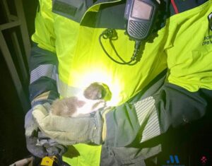 El suceso tuvo lugar pasadas las 21 horas, cuando un vecino alertó a las autoridades y a sus vecinos sobre la situación preocupante del pequeño felino. Rápidamente, los bomberos se acercaron al lugar y llevaron a cabo el rescate de la cría.