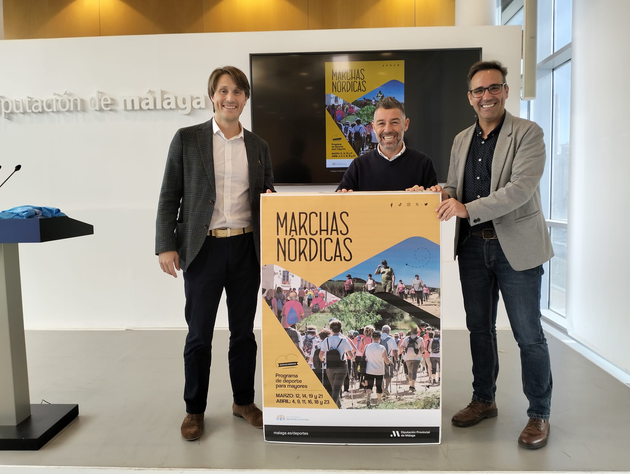 Arranca hoy martes una nueva edición de las Jornadas de Marcha Nórdica de la Diputación, una forma de ejercicio al aire libre que consiste en caminar con la ayuda e impulso de bastones similares a los utilizados en el esquí. Más de 1.700 personas mayores de 51 municipios de menos de 20.000 habitantes de la provincia participarán en la nueva temporada, que se celebra hasta el 23 de abril con una decena de salidas por el Paseo Marítimo de Rincón de la Victoria.