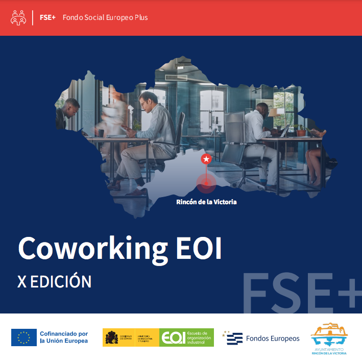 El programa contará con 60 horas de talleres de formación grupal, que se llevarán a cabo todos los miércoles de 17.00 a 20.00 horas, sesiones presenciales y hasta 20 horas de tutorías personalizadas online. El Espacio Coworking EOI es totalmente gratuito gracias a la cofinanciación del Fondo Social Europeo Plus y el Ayuntamiento de Rincón de la Victoria.