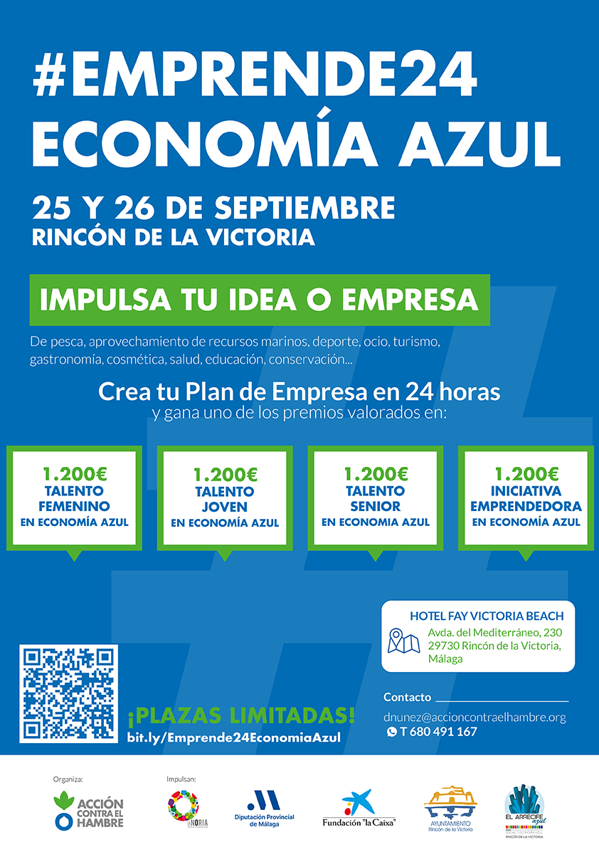 El municipio del Rincón de la Victoria acogerá los días 25 y 26 de septiembre el concurso #Emprende24 Economía Azul. El evento celebrado por el centro de innovación social de la Diputación de Málaga La Noria, junto a Acción contra el Hambre y el Ayuntamiento de Rincón de la Victoria, busca impulsar y promocionar las ideas de emprendimiento basadas en la preservación de los ecosistemas marinos y la defensa de la sostenibilidad medioambiental. La acción forma parte del convenio de colaboración entre la Diputación de Málaga y Fundación “la Caixa” a través de La Noria. Tendrá lugar en el hotel Fay Beach.