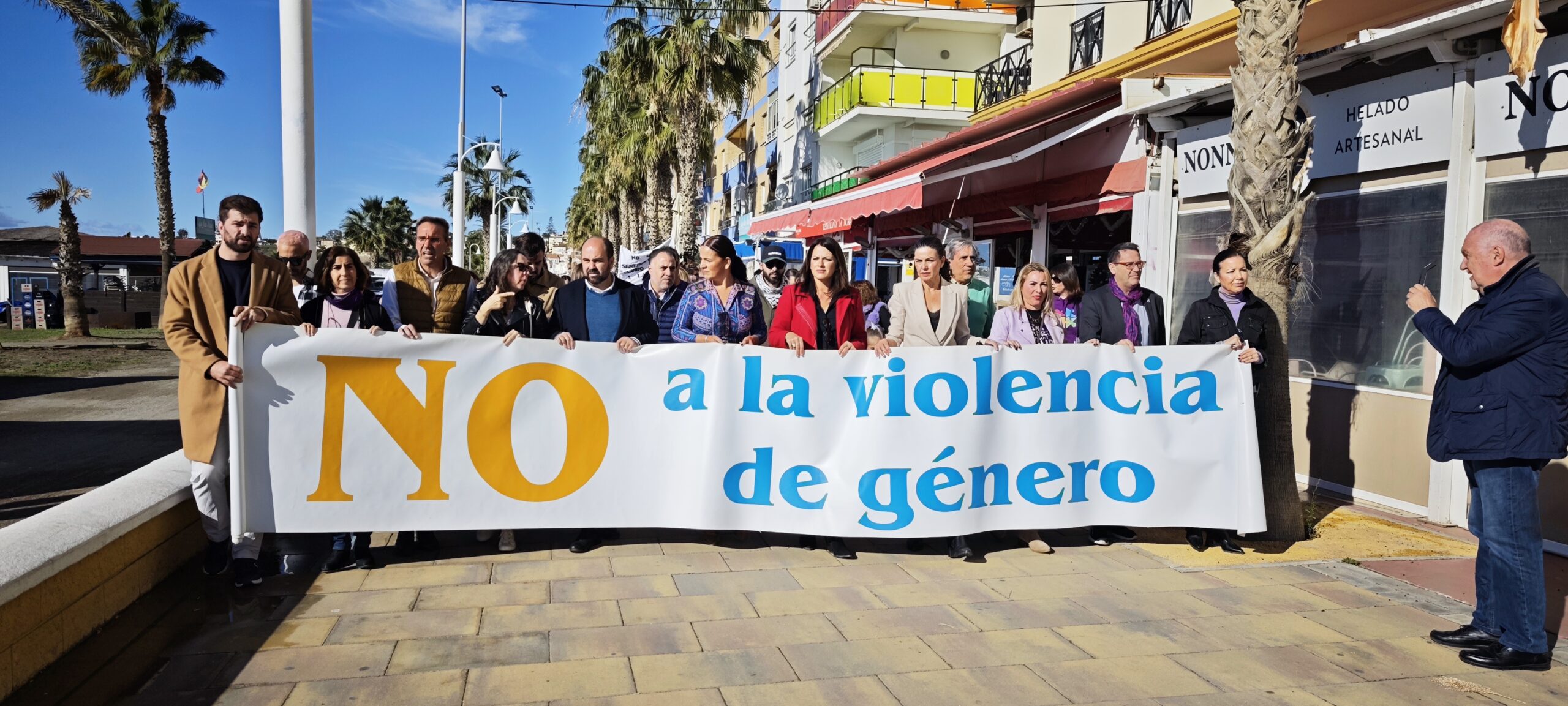 La marcha ha partido desde la plaza Pepe El Boticario y ha recorrido el paseo marítimo hasta finalizar en el Auditorio Municipal, donde el alcalde, Francisco Salado, acompañado por miembros de la Corporación municipal, ha mostrado su “más absoluta condena y repulsa” ante este nuevo crimen machista.