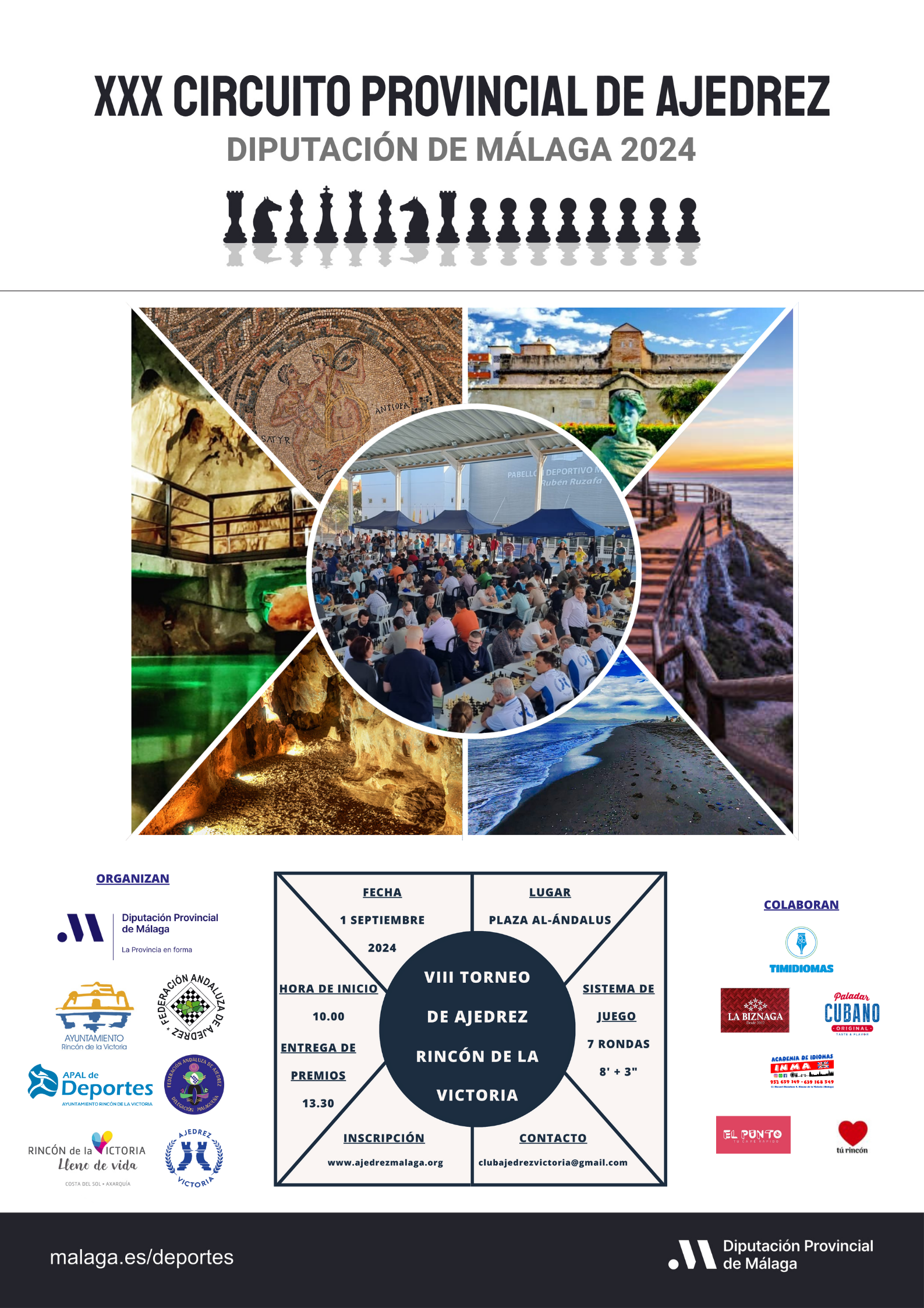 Ya están abiertas las inscripciones en la siguiente dirección web: https://www.ajedrezmalaga.org/circuito-diputacion/2023/8/2/vii-torneo-de-ajedrez-rincon-de-la-victoria