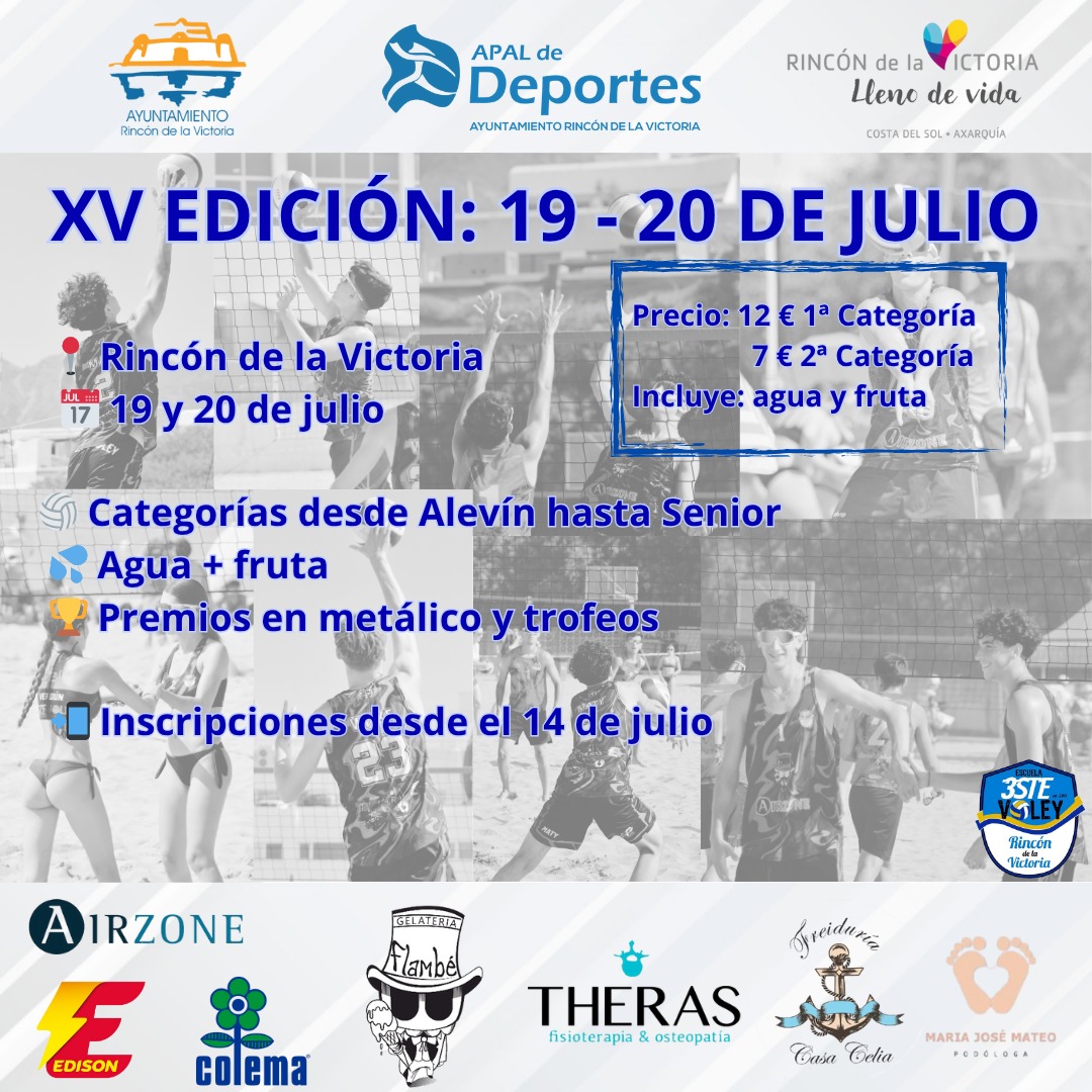 La playa de El Tajo será el escenario del XV Torneo de Voley Playa de Rincón de la Victoria, que se celebrará los próximos 19 y 20 de julio, y que reunirá a alrededor de 450 jugadores procedentes de distintas provincias andaluzas.