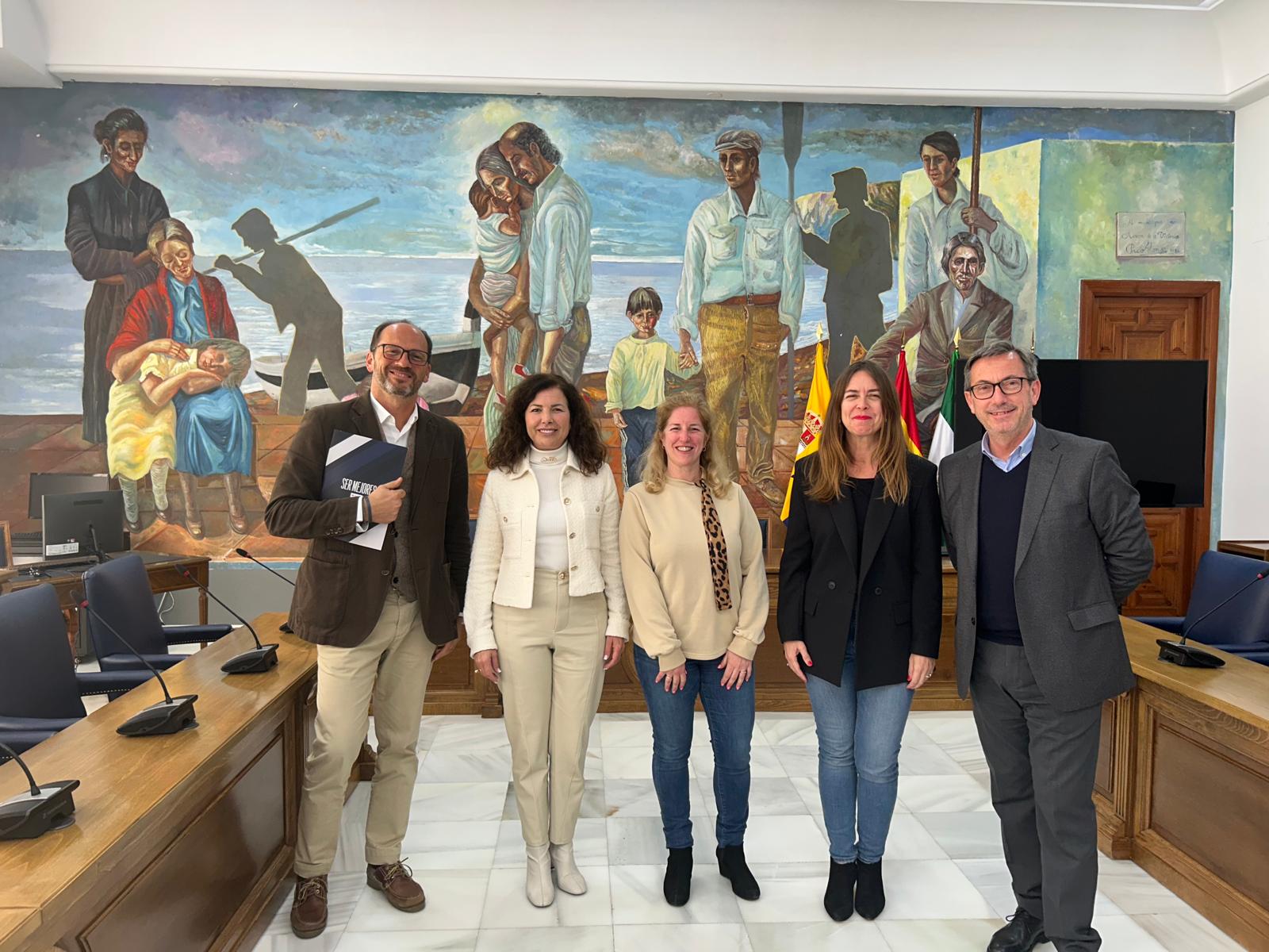 La edil del Área, Lola Ramos, junto a la responsable provincial de Proyectos de los Jóvenes de Cruz Roja, Patricia Vallejo, la responsable provincial de Cooperación Empresarial del Plan de Empleo de Cruz Roja, Berta Ramírez, y el director de Carrefour de Rincón de la Victoria, Antonio Márquez, han mantenido un encuentro para acordar las distintas acciones que se desarrollarán en la jornada.