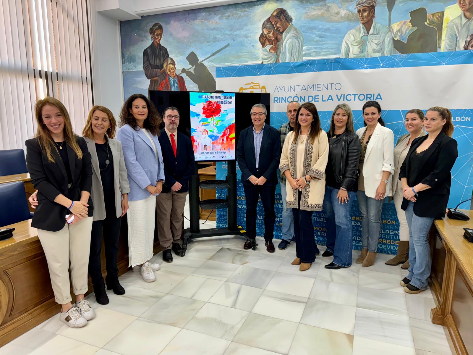 El alcalde de Rincón de la Victoria, Francisco Salado, ha presentado junto a la concejala de Cultura, Paz Couto, el responsable de Artes Plásticas de Fundación Unicaja, Rafael Valentín López, y miembros de la comisión organizadora el cartel y la programación de esta cita cultural.